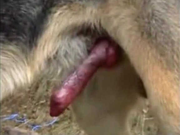 Hij pakte een potje en Missy voelde iets glibberigs in haar kut gesmeerd worden. Daarna manoeuvreerde hij de hond tussen haar benen en leidde diens pik naar haar schacht. Door het glijmiddel schoot de hondenpik zo in haar kut en de herdershond begon neukbewegingen te maken met zijn onderlijf. Hij zette zijn voorpoten op haar borsten en naaide haar ritmisch. Hij begon haar gezicht te likken en vooral over haar mond. "Doe je bek eens open", zei de man op streng toon. Gewillig opende Missy haar mond en voelde de hondentong naar binnen komen. "Kan hij tongzoenen of niet?", zei de man lachend. Missy kon wel janken en werd kotsmisselijk van het geheel. De hond begon steeds sneller te naaien en ze voelde zijn pik tegen haar baarmoeder stoten. De man kwam bij haar hoofd zitten en hield haar zijn pik voor.